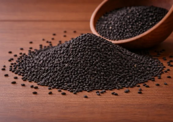 Small black seeds with a slightly bitter and peppery flavor, commonly used in traditional dishes and baking.